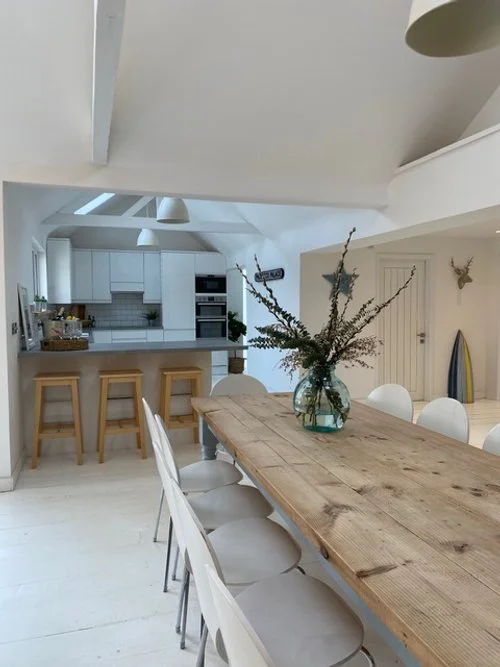 A beautifully designed, light-filled cottage just steps from the golden dunes of Camber Sands. With space for up to 12 guests, it’s ideal for large families, group getaways, or special celebrations.